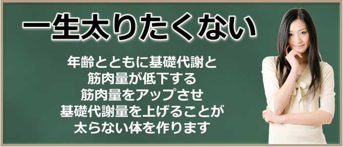 ダイエット成功に向け、筋肉量を増すことで体質改善で、基礎代謝を上げるため、太りにくい体に成功。